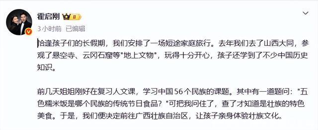 编辑|先锋谷 清明假期间,霍启刚和郭晶晶带着三个子女出游。 一家人低调的模样,不仅再度颠覆了大众对豪门的认知,也让大家再次看到霍家低调朴素的家风。 在这样的温暖氛围里,再细看三个孩子的名字,才发现它们看似平淡普通,实则暗藏深意。 字字都有来头的背后,藏着父母和霍家怎样的深切期许呢? 霍启刚与郭晶晶的婚姻,向来是豪门中的一股清流。 故事的开端,还要从2004年说起。 那年夏天,郭晶晶在雅典完成蜕变,将在悉尼奥运会上斩获的单人和双人三米板的两银“换成了”两金。 而霍启刚当时也去到了雅典奥运会的现场,只不过他没有去看跳水比赛。 而且他当时也不懂跳水,更谈不上喜欢跳水了。 但有一次他在电视上看到了跳水比赛,也看到了郭晶晶。 这个时候配资十大正规公司,他就认为郭晶晶很漂亮,就像兰花一样温婉。 奥运会结束后,郭晶晶跟随跳水队去到了香港。 当时,很少和别人合照的霍启刚也是赶紧上前和这位跳水皇后合照。 这还不够,在他看来,这次是和别人一起照的,他拿不到照片。 也正是再度合照,让此前不知道霍启刚的郭晶晶记住了他。 不过,郭晶晶当时曾抱怨: 碰巧这个时候,霍震霆让大儿子帮他安排运动员去澳门一事。 霍启刚当时也利用便利“不小心”在船上坐到了郭晶晶的隔壁。 后来霍震霆回应这段小故事也直言: 而霍启刚对于追女神这一点,也曾用死缠烂打来形容。 他也是经常往北京跑。 还因为认识郭晶晶学会的拼音,普通话的进步速度也是那样地快。 到了2008年奥运会,4年前在雅典斩获两金的郭晶晶想继续保持状态卫冕有一点难度。 她有一定的压力。 而霍启刚也承担着不小的压力。 原因也很简单,他害怕郭晶晶没有夺金,外界说是他带坏了郭晶晶。 而郭晶晶在家门口顶住了压力,在北京奥运会荣获两金。 只是他没有走向下一届的伦敦奥运会。 也是2012年,她终于嫁给了霍启刚。 婚后14年,夫妻俩始终低调。 虽说霍家是顶级豪门,但两人不张扬不炫富。 郭晶晶用的是3块钱的发圈。 多年来,她依旧保持着勤俭节约的消费观。 霍启刚这位豪门少爷也曾被拍到独自去买菜。 三观一致的夫妻俩终是把日子过成了普通人的模样。 在子女教育上,两人更是言传身教、用心浇灌。 他们共育有一儿两女。 和不少豪门将孩子交给别人带不一样,在郭晶晶看来,孩子不仅是生出来那样简单,还要细心地养。 众所周知,从小就走上跳水之路的郭晶晶在成长阶段吃了不少的苦。 当妈妈后,她也会给孩子讲他们很幸福,生活在一个很好的环境里。 但孩子在成长阶段吃一点苦也是必要的。 如此一来孩子就能深知生活的不易了。 而霍启刚不仅是一位宠妻狂魔,还是一位认真负责任的好爸爸。 郭晶晶也曾透露很心疼丈夫。 霍启刚每天都是在外面跑很忙配资十大正规公司,可即使这样,比如说中间有一个小时的时间,他都会跑回家看看孩子。 只因为他不想错过,毕竟等他晚上回来,孩子很多时候都睡着了。 等霍中曦稍微大一点后,这位爸爸也经常会带孩子去博物馆、图书馆等地方学习。 在父母如此的教导下,三个孩子从小就养成了勤俭懂事的模样。 出门时,他们身旁也没有成群的保镖。 在刚刚结束的清明假期间,夫妻俩又带着孩子去广西游玩了。 从霍启刚的这番话不难看出这个家族的家风。 他们不会刻意标榜,而是藏在一言一行的细节里。 而三个孩子的名字,便是这份家风最直白的传承。 其中,三个孩子的名字里都藏着中字,这既代表中庸,也包含霍家世代坚守的家国情怀。 霍英东,毋庸置疑的爱国商人。 北京申奥这件事,他没少为此忙前忙后奔走。 每次奥运会结束后,他还会奖励获奖牌的运动员。 有这样的长辈引路,后辈自然不负期许。 霍震霆多年来一直致力于体育事业的发展,像巴黎奥运会等众多大型赛事都有他参加的身影。 霍启刚在英国留学时就很清楚自己的使命,毕业后他也回到了国内,尽他所能,为香港更为国家服务。 再看三个孩子具体的名字,霍中曦的“曦”字本义是太阳和阳光。 这次一家人游广西,这位哥哥就主动照顾妹妹。 如今的他身高猛长,眉眼间既有父亲的沉稳,也有母亲的坚韧,也不辜负中曦二字。 二女儿霍中妍的“妍”本义为美丽,美好。 而这个字也是郭晶晶自身经历的写照。 身为奥运冠军的她坚韧果敢,身为目前的她温柔内敛。 也希望霍中妍能成长为一个聪慧、善良、坚韧的女孩,像妈妈一样拥有自己的光芒。 霍中怡的“怡”就更简单了,本意就是快乐愉悦的意思。 看来,父母是希望这个小女儿能一直平安喜乐,活得自在。 这次霍启刚带着子女出游,不仅让我们感受到了一家人的温馨日常,也让我们读懂了三个孩子名字的身影。 比起豪门的财富,郭晶晶夫妻俩带给孩子的从来不止于优渥的生活,还教会了他们谦逊、有担当。 他们也终将不负名字中的期许,活成自己最好的模样,并将霍家的家风继续传承下去。 一场广西之行,让我们看到了豪门最动人的模样。 霍家的传承,是霍英东的爱国担当,是霍启刚的低调坚守,是郭晶晶的勤俭坚韧,更是三个孩子名字里的暗藏深意和字字都有来头。 霍中曦的阳光担当、霍中妍的温婉聪慧、霍中怡的自在喜乐。 三个名字,三种期许,却有着同样的初心。