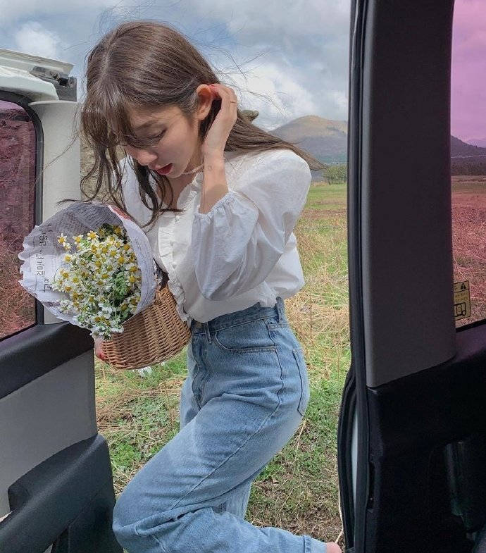 再看穿搭,这姐简直是小个子女生的穿搭模板!甜系造型里,她最爱浅杏色针织连衣裙配白色玛丽珍鞋,手提毛绒包站在首尔咖啡馆前,阳光洒在羊毛卷上,活脱脱韩剧初恋女主;切换盐系风时,黑色短款露腰卫衣+高腰工装裤,腰间系条金属链条,脚踩马丁靴,高马尾一扎,秒变又酷又飒的姐姐。她还特别会用“腰线魔法”——短上衣+高腰裤的组合永远不会错,再踩双同色系尖头鞋,视觉上腿长直接加10cm!