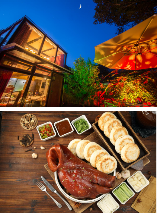 石光长城推出精品“长城石烹宴”等特色美食。其中招牌菜“贺氏酱猪脸”2020年被列入延庆区非物质文化遗产。搭配延庆地道火勺食用,更显风味独特,令人回味无穷。此外,必点菜还有石烹豆腐,带着淡淡的豆香;石烹柴鸡,炖得软烂入味;炒山野菜,清爽解腻,一口就尝到山林的鲜。坐在四合院里,就着山间的风吃一顿热乎饭,连饭香都带着秋天的踏实。